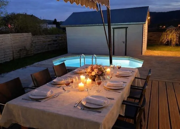 Villa 1950 Detente Et Decouverte Avec Spa Et Piscine Exterieure的住客可用私人游泳池。该公寓离Col du Plafond大约3.6公里。 市中心距离住宿处1公里;这套公寓距离Chapelle Saint-Hubert de Berniprey3.8公里。